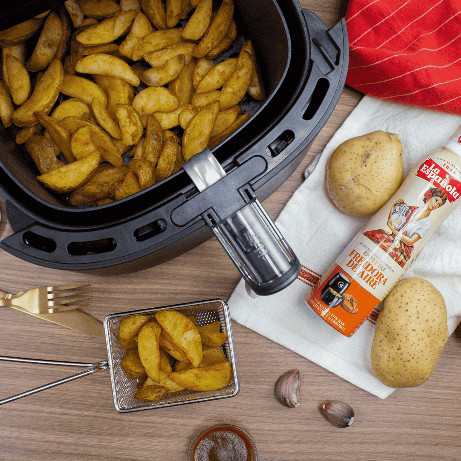 Su formato en forma de pulverizador de aceite es perfecto para las airfryers ya que garantiza que el aceite impregne todos los alimentos a cocinar, pero utilizando solo una cantidad muy pequeña. De esta forma, conseguimos unos fritos más crujientes y sabrosos y, al mismo tiempo, controlamos el exceso de aceite que pueden echar a perder nuestros platos.